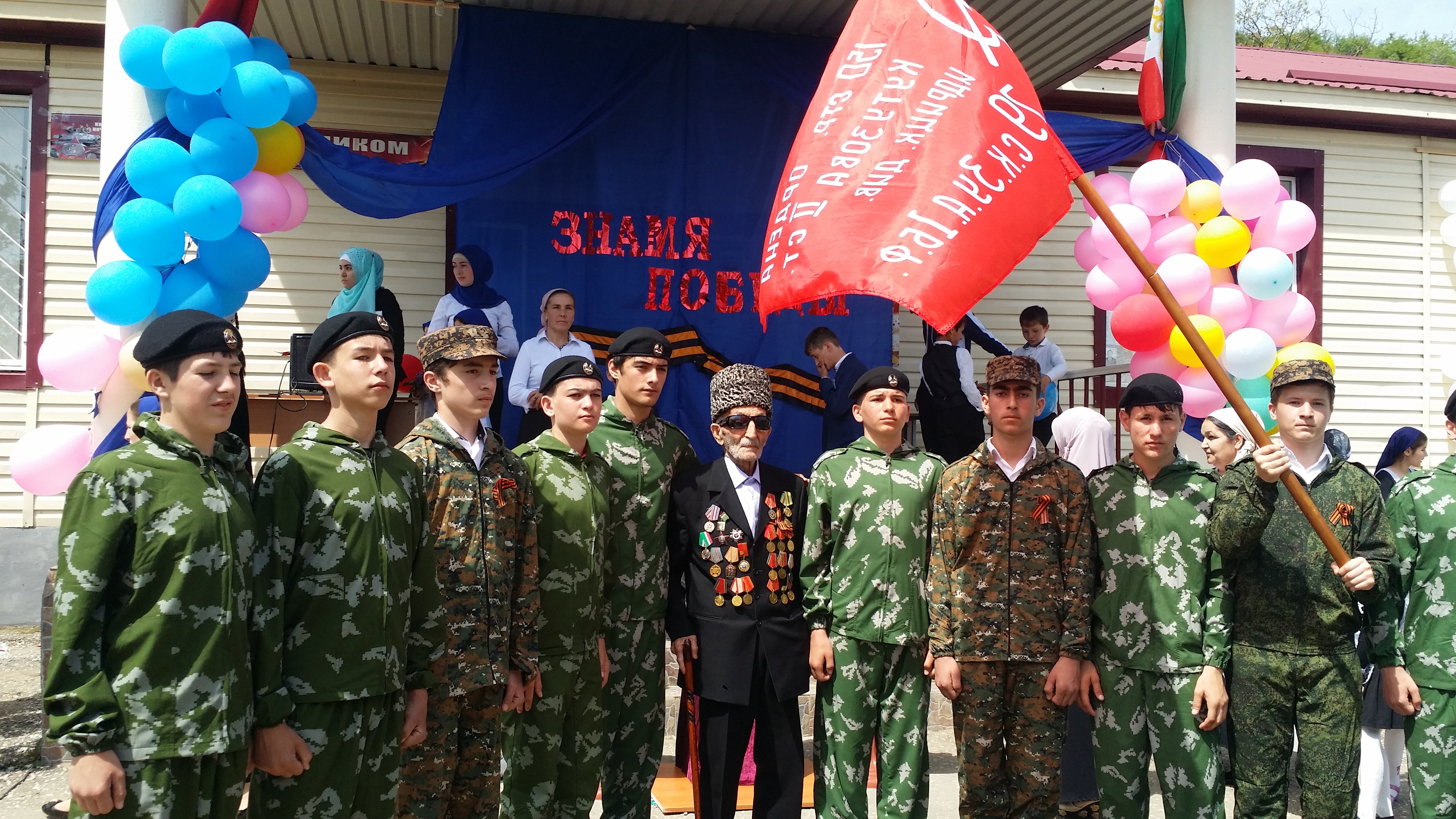 Учащиеся МБОУ «СОШ им.Ю.Абдулшаидова» приняли эстафету «Знамя Победы» от учащихся МБОУ «СОШ №1 с. Центарой имени Первого Президента Чеченской Республики Героя России Чеченской Республики А.-Х. А. Кадырова.
