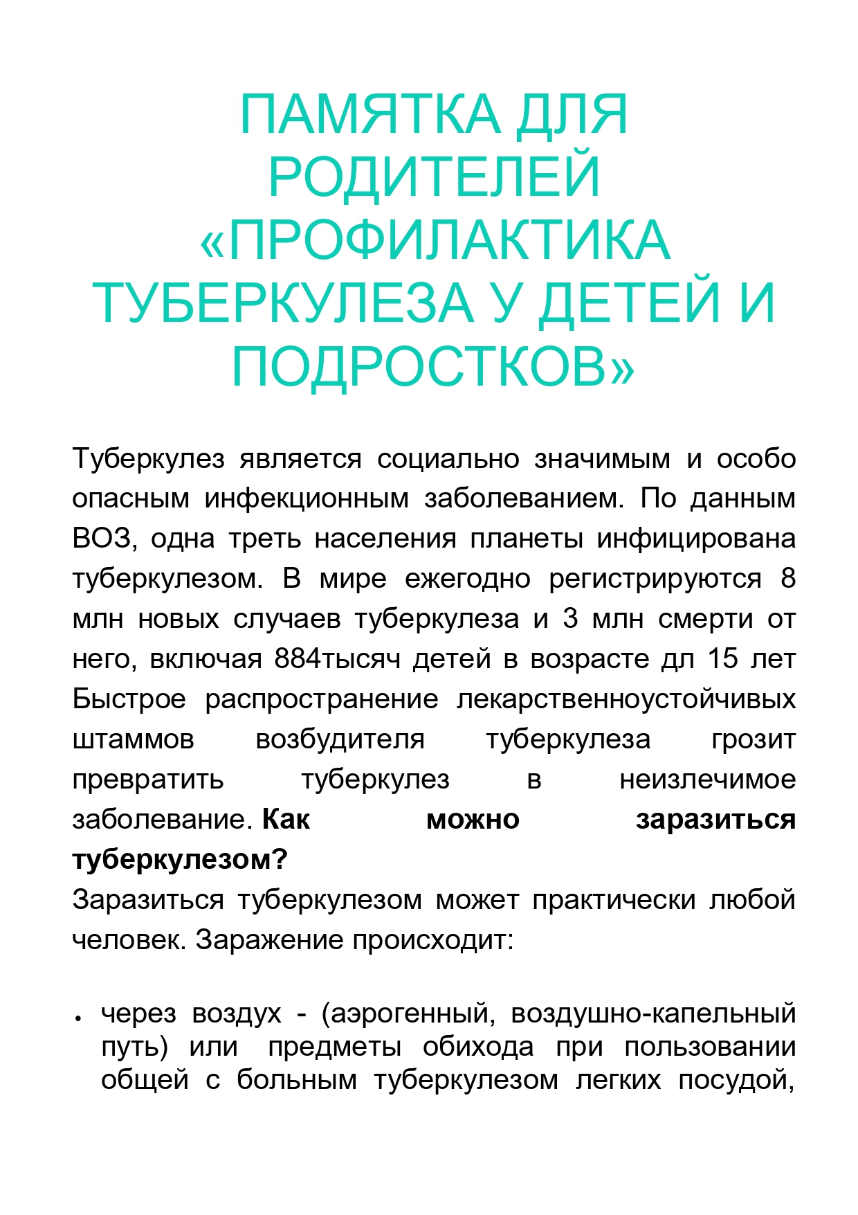 «ПРОФИЛАКТИКА ТУБЕРКУЛЕЗА У ДЕТЕЙ И ПОДРОСТКОВ»