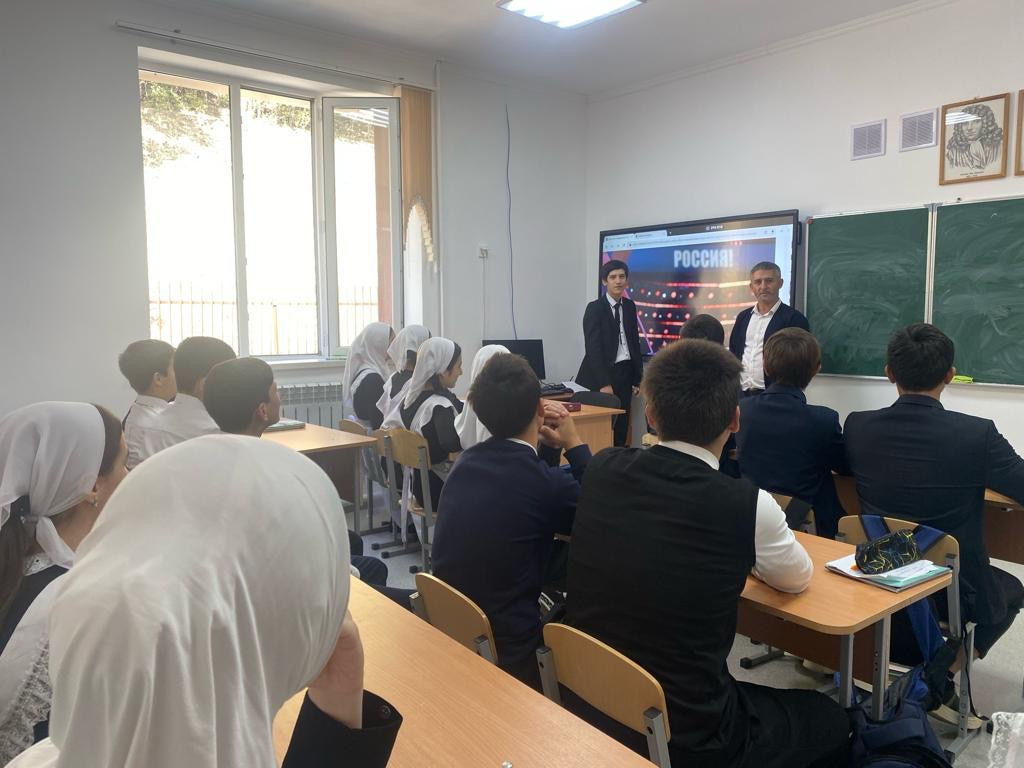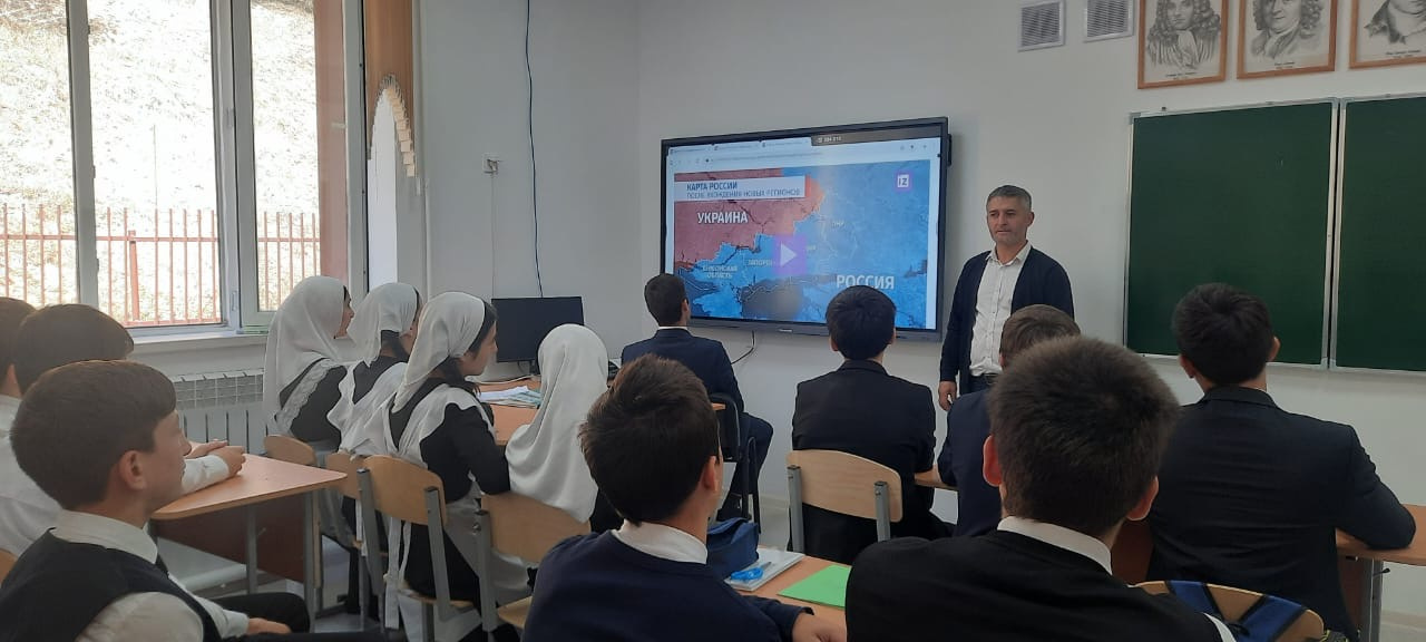 30.09.2023При взаимодействии с отделом УФСБ России Ножай-Юртовского района по Чеченской республике Дотуев А.И. провел урок истории с обучающимся 9-11классов на тему : « 30 сентября –день воссоединения ДНР, ЛНР Запорожской и Херсонской областей с Российской Федерацией». Посмотрели видео, как проходило торжественное подписание документов о вхождении ЛНР, ДНР, Запорожской и Херсонской областей в состав России.