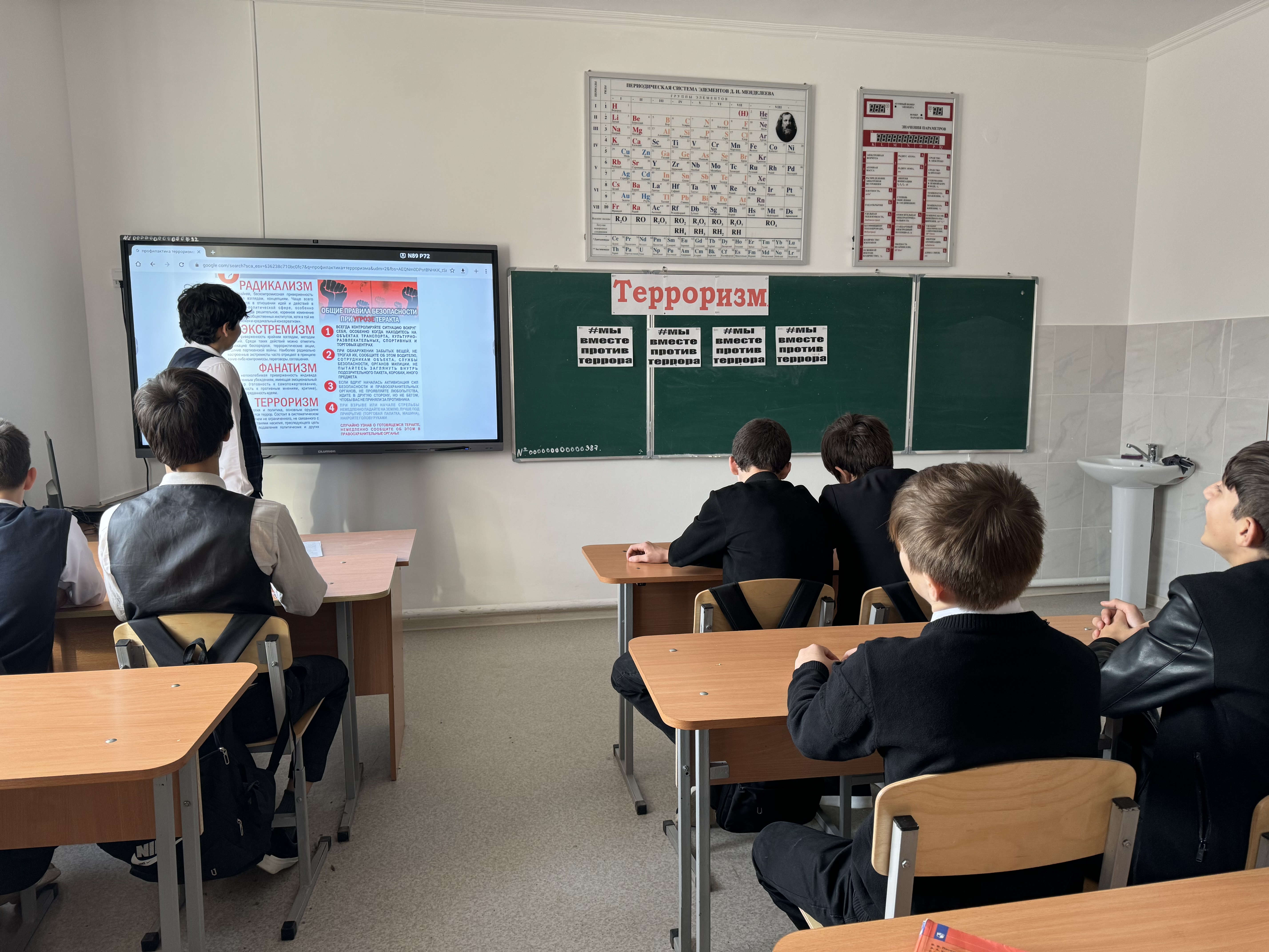 12.12.202412.12.2024г. В МБОУ «СОШ им.Ю.А.Абдулшаидова проведен информационный час "Терроризм - угроза обществу". Ребятам рассказали о том, как важно знать правила поведения при угрозах терактов, как вести себя в столь непростых ситуациях. Особое внимание было уделено правилам поведения во время возникновения теракта, обнаружения подозрительных предметов.