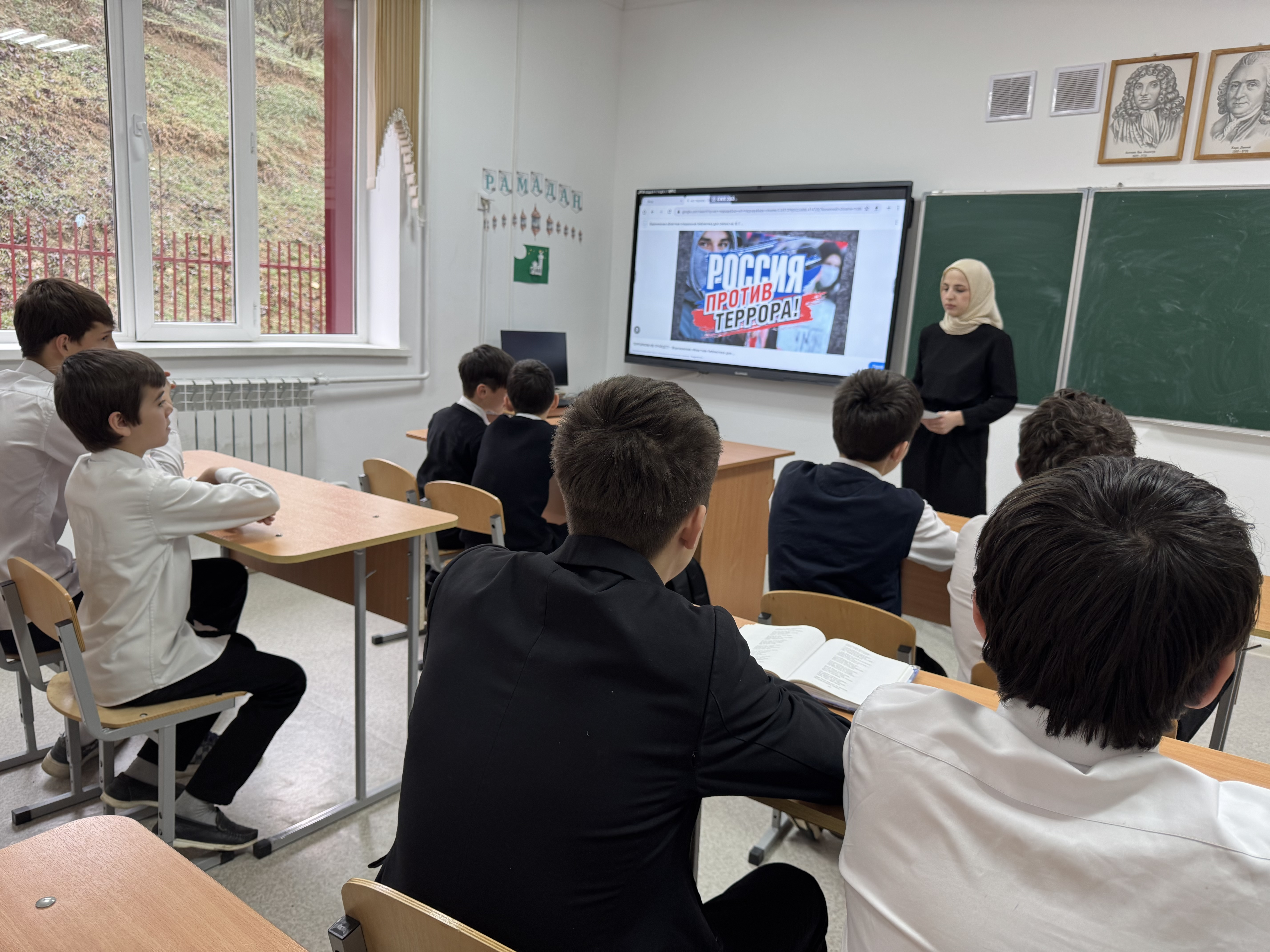 03.2025г. в 8 классе проведен классный час на тему «Россия против террора!» охват-13чел.