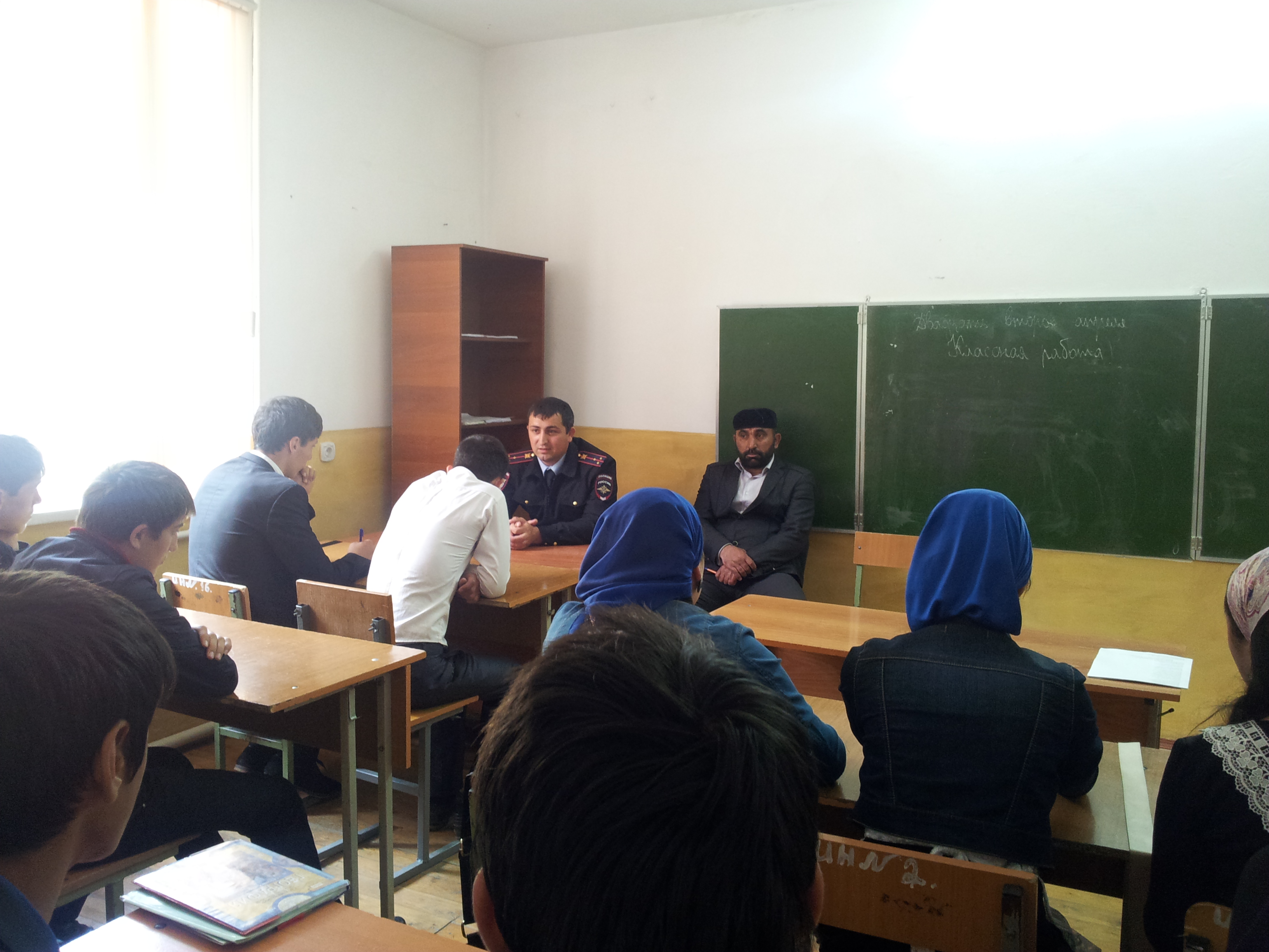 В целях активизации работы по детскому дорожно-транспортному травматизму 09 октября 2014 г. в школе проведена встреча уч-ся 9-11 кл. с участковым инспектором села Адуевым В.В.
